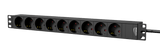 L'altezza totale copre un singolo spazio rack da 19". Utilizzando le alette laterali girevoli è possibile anche il montaggio a parete. I collegamenti in ingresso vengono effettuati tramite un cavo di collegamento fisso da 2,5 metri dotato di spina schuko maschio (CEE 7/7), mentre le prese di uscita tedesche (Tipo F - CEE 7/4) consentono la distribuzione dell'alimentazione a nove dispositivi. È previsto un punto di connessione a terra del telaio per collegare facilmente il rack/armadio alla terra di rete, come richiesto dalle norme di sicurezza.