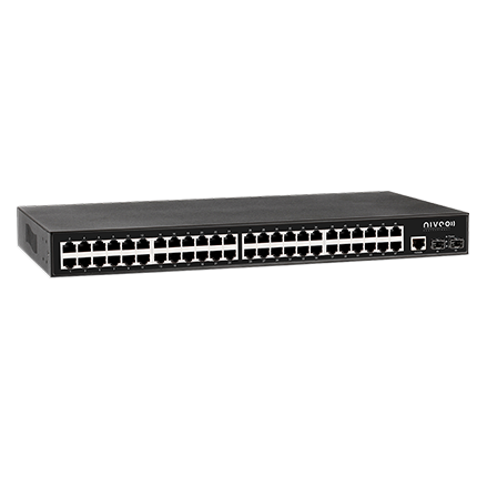 Switch completamente gestito L2 48-porte 10/100/1000 con 2 porte in condivisione TP/SFP non popolate. Supporto VLAN 802.1Q, Spanning tree (RSTP e MSTP), Link aggregation (Static Trunk & IEEE 802.3ad con LACP), IGMP snooping e QoS. Non blocking con supporto jumbo frame. Gestione da Web GUI e CLI (Telnet). Connessioni sicure HTTPS e SSH. Alimentazione 100-240Vac. Dimensioni WxDxH 440 x 330 × 44 mm, peso 3Kg.
