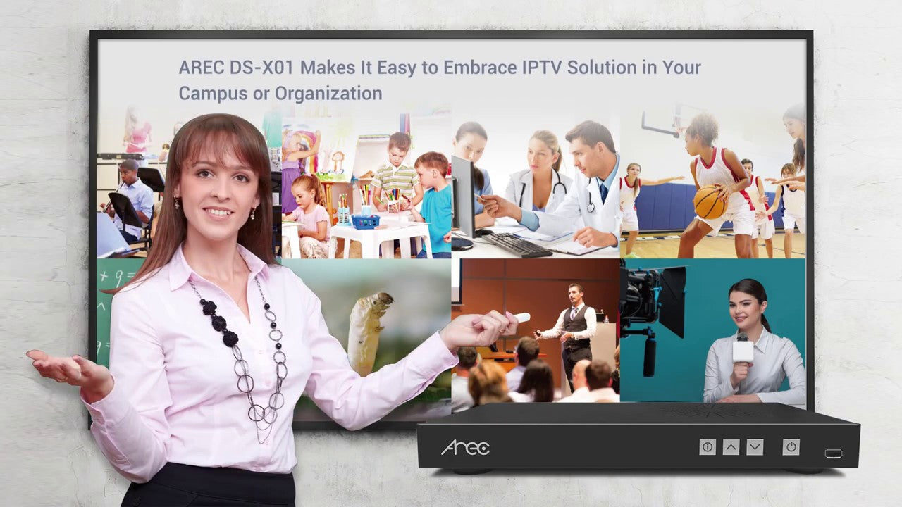 Decoder di streaming video H.264 Full-HD (fino a 1080p@60fps). Gestione tramite pagina WEB. Ingressi: porta LAN per decodifica di 99 stream RTP, RTMP, RTSP, 2 porte HDMI/VGA, 2 ingressi audio su mini-jack stereo. Selezione delle sorgenti dai pulsanti frontali, dalla GUI sullo schermo o da sistema di controllo di terze parti. Uscite: una porta HDMI/VGA, uscita audio su mini-jack stereo. Porta USB per interfaccia on screen. Porta RS232 su connettore phoenix. Alimentazione 12V/2A (incluso alimentatore 230VAC-12VDC ). Dimensioni 354x 185x46mm, peso 1.36kg.