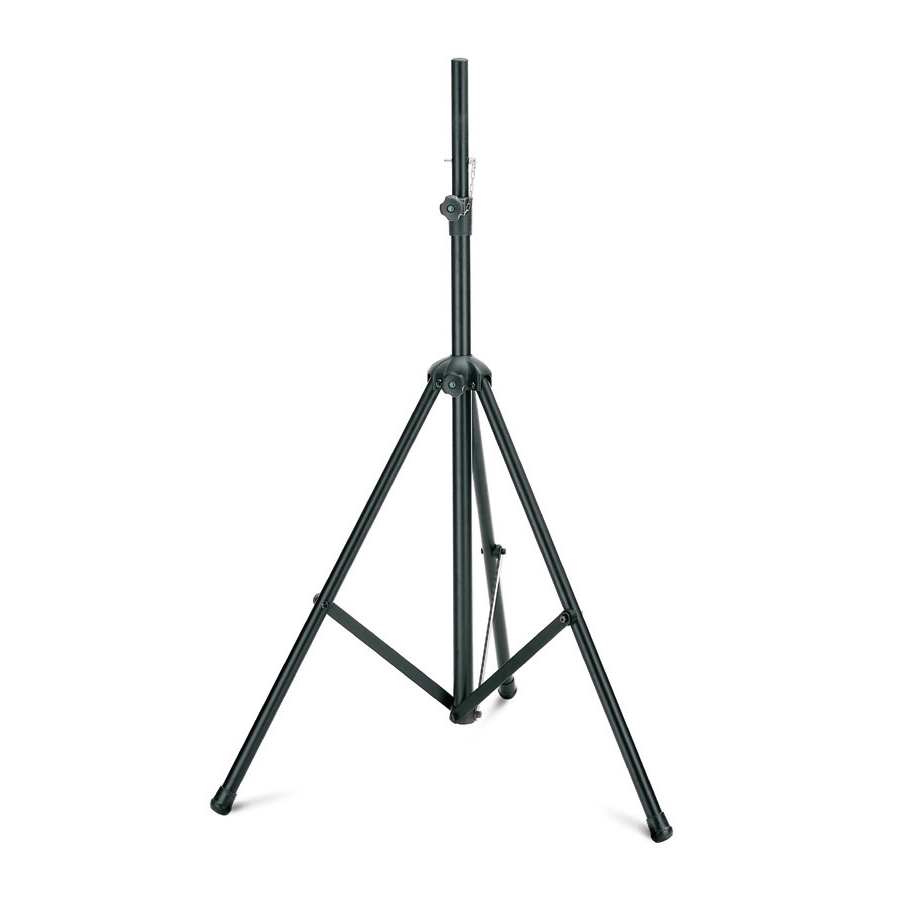 Cavalletto supporto diffusori a treppiede, telescopico con altezza regolabile da 1305 a 2250mm, struttura completamente in alluminio. Regolazione in altezza e bloccaggio di sicurezza mediante morsetto di serraggio in nylon. Massimo carico 40Kg. Colore Nero anodizzato, Peso 3,4kg