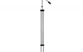 Asta per microfono da pavimento telescopica ( regolabile da 640 a 1340mm.) di impatto estetico in acciaio satinato naturale con base ellittica ( 389 x 284mm.) in acciaio verniciato nero e piedini antirisonanti, completa di asta a giraffa, riduttore da 3\8" e M12x1 interno, M16x1 esterno.