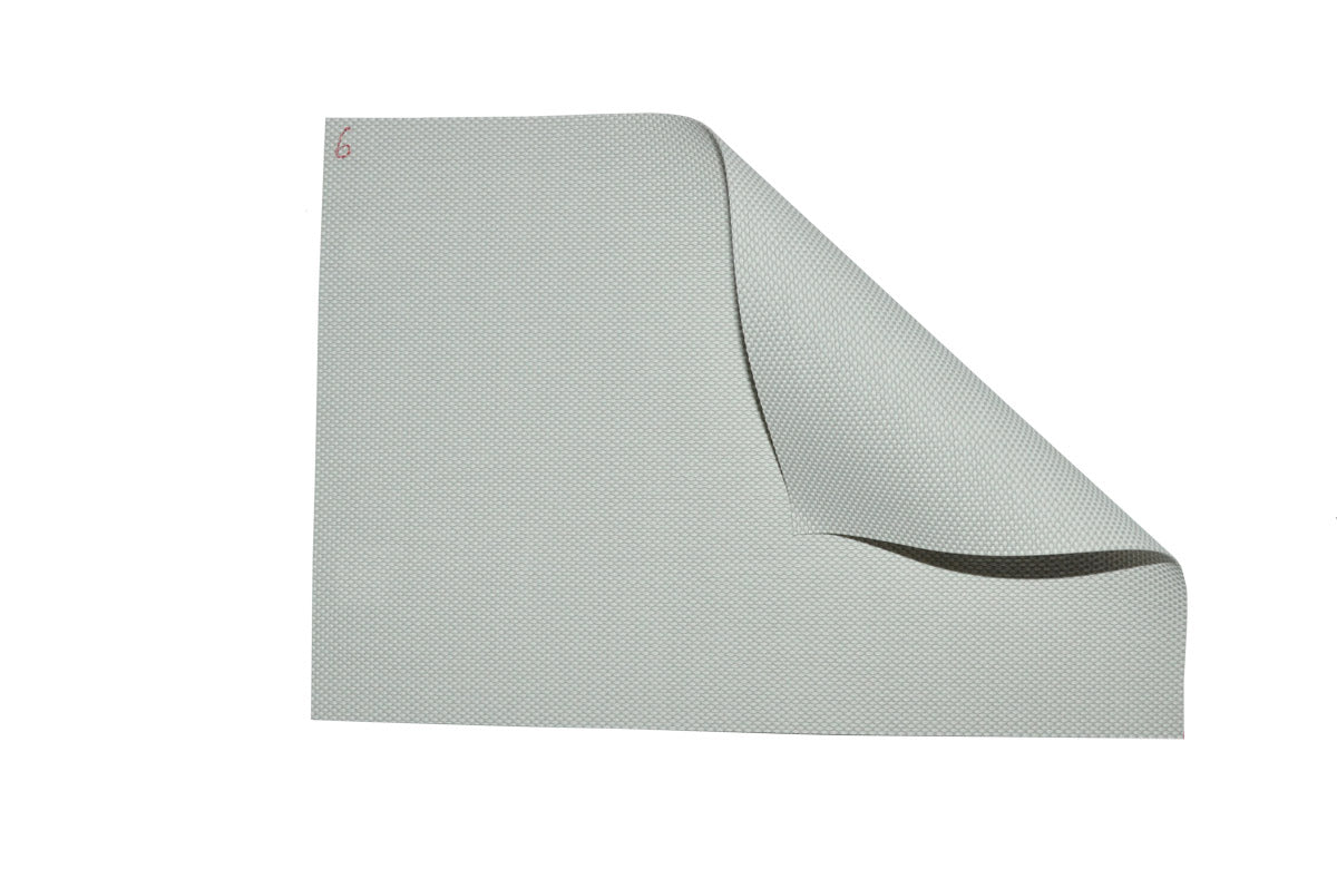 Tela sciolta tagliata su misura del cliente modello "Lumi Gray". Tela in foglia di PVC per proiezione frontale con fronte e retro grigio. Guadagno: 0,8 Angolo di Visione: 150° Altezza Bobina 240cm. Spessore: 0,40mm. Peso: 601grammi\MQ. Classificazione Ignifuga M2