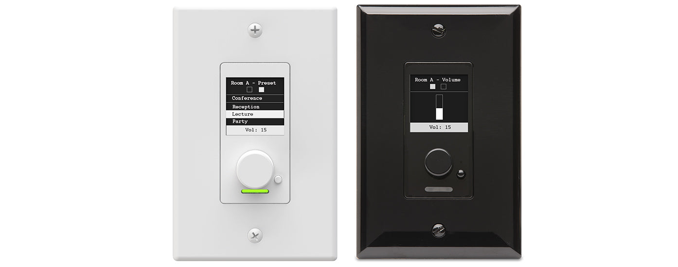 Pannello di controllo a parete configurabile. Integrazione con piattoforma unIFY e Q-SYS Design. Controllo tramite Q-SYS o terze parti con protocollo TCP/IP e UDP. Display OLED a contrasto elevato. Ledbar assegnabile per feedback controlli. Alimentazione PoE con cavo CAT5e/CAT6. Wall plate bianca + nera incluse. Dimensioni: 1 US gang.