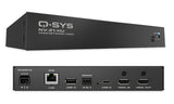 Network Video Endpoint. Soluzione single cable per distribuzione AV, AV Bridging e ricarica device per Q-SYS. Algoritmo Q-SYS Shift per compressione automatica video. Configurabile come encoder o decoder tramite software. Modalità USB-C o HDMI selezionabili. Ingresso e uscita HDMI 2.0 con supporto per risoluzioni fino 4K60 4:4:4 e audio fino a 8 canali PCM. USB-A per funzionalità di HID routing (5 V DC 900 mA). Collegamento USB-C per funzionalità di Video Bridging, Display Port mode (4K60 4:4:4). Porta seriale RS-232. Ricarica fino a 65W (non disponibile se alimentato con PoE), alimentatore esterno necessario per ricarica tramite USB-C. Alimentazione PoE++ 802.2bt Type 3 o tramite alimentatore esterno 12 V DC 9A. Controllo tramite RS-232. Installazione semplificata con supporti inclusi. Dimensioni: 185 x 131.5 x 30.5 mm. Peso: 0.8 Kg.