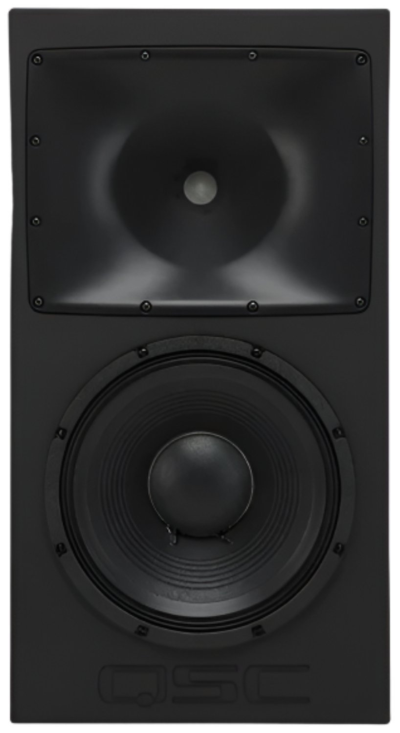 Diffusore da studio di riferimento a tre vie per cinema, adatto all'uso dietro schermo microforato. Cabinet in multistrato di betulla da 15 mm. Woofer da 12" per le basse frequenze e driver da 3,5" per le medie con tweeter da 1,75" coassiale su tromba assimetrica. Risposta in frequenza 50hz-20 khz. Dispersione 90" assimetrica. Potenza 500W Low, 80W Mid, 50W Tweeter. Impedenza 8 ohms per tutte le sezioni. Pressione max 127-132 dB; Dimensioni 725 x 383 x 344 mm, peso 30,1 kg. Colore nero. Doppio connettore NL8. dotato di 8 punti di fissaggio M10 fissaggio M