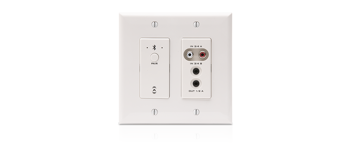 Multi-IO Dante network audio wallplate. Modulo Bluetooth (Stereo, range 10m) con tasto pairing, 2 ingressi RCA, 1 ingresso + 1 uscita su minijack 3,5mm, 2 uscite bilanciate su Euroblock laterali. Ingressi RCA e minijack selezionabili individualmente o combinati. Alimentazione PoE 802.3af. Porta alimentazione + Dante su RJ45 (100Mbps). Integrazione con piattoforma unIFY e Q-SYS Design. Wall plate bianca + nera incluse. Dimensioni: 114.3 x 88.9 x 50.8 mm (2 US gang). Peso: 0.27 Kg.