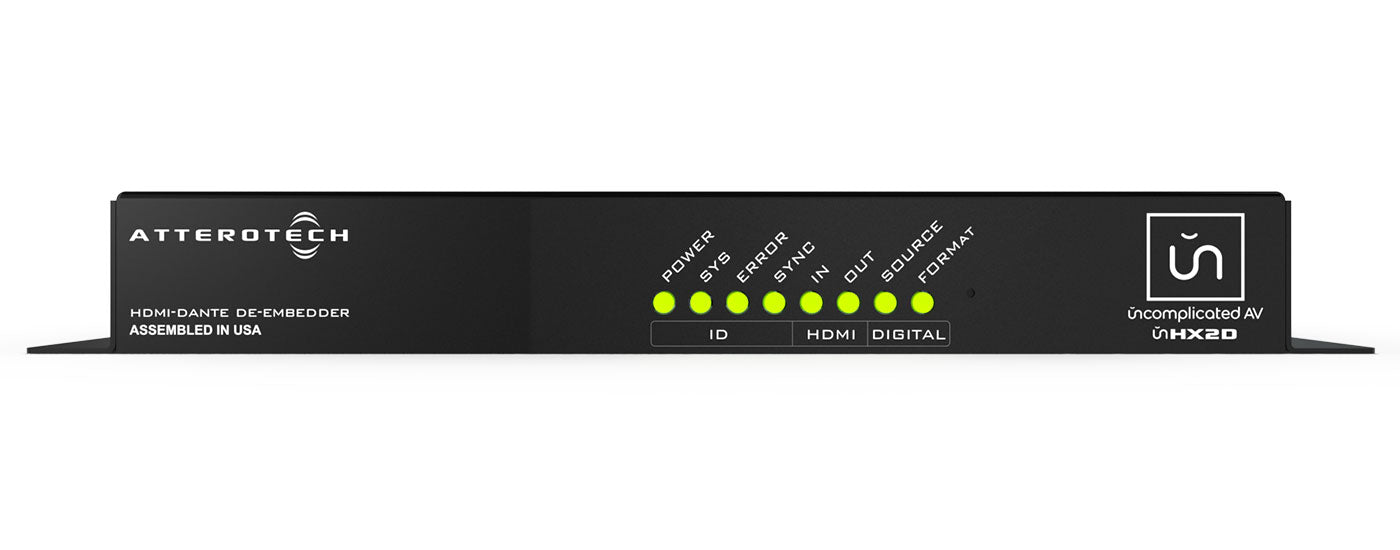 Embedder/de-embedder da/a PCM HDMI Audio a/da Dante/AES67. Ingressi analogici, S/PDIF, HDMI. Uscite analogiche, S/PDIF, HDMI. Compatibile HDCP 2.2. Lip-Sync ed EDID configurabili. Integrazione con piattoforma unIFY e Q-SYS Design. Alimentazione PoE 802.3af. Dimensioni: (25.4 x 233.7 x 101.6 mm. Peso: 0.6 Kg.