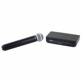 Kit radiomicrofono analogico per voce. Composto da un trasmettitore a mano BLX2/SM58, e un ricevitore BLX4. Banda M17 (662 - 686 MHz). Accessori inclusi: alimentatore PS23E, supporto per asta e adattatore filettato 5/8" - 3/8", valigetta per trasporto