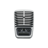 Microfono a condensatore cardioide ( diaframma Largo 25mm ) portatile con preamplificatore digitale per uso con apparati Mfi Apple ( IOS iPhone\iPad,MAC o PC ) con uscita MiniUSB, Processore interno con 5 selezioni e Led Visualizzazione: Vocale, Cantato, Flat, Strumenti, Loudness; Selezione frontale Touch per Mute, regolazione del Volume, 5 posizioni DSP e Gain Microfono; Controllo automatico di Gain, EQ e compressione; Uscita Monitor su minijack da 3,5mm senza latenza; Convertitore 24Bit\48KHz; Risposta in frequenza 20-20KHz; Regolazione volume da 0 a +36dB; Max pressione 130dBSPL; Costruzione in pressofusione di alluminio con stand regolabile; Peso: con stand 160gr., senza 90gr.; Dimensioni con stand: 128x86x70mm.; Colore Grigio Metalizzato. Accessori inclusi: Stand in alluminio anodizzato, n.1 Cavo MicroUSB - Lightning da 1mt.,n.1 Cavo MicroUSB - Usb-C da 1 mt., n.1 Cavo prolunga MicroUSB da 1mt., n.1 Adattatore da 5\8" per adattamento in aste microfoniche standard.