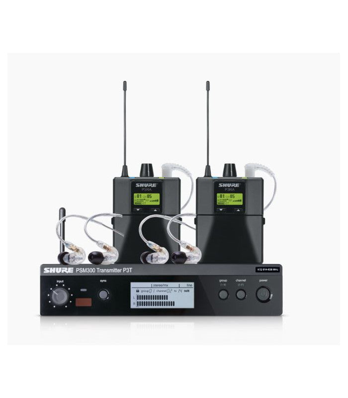 Kit in-ear ideale per il monitoraggio di 2 performer, composto da 1 trasmettitore P3T, n° 2 ricevitori P3RA, costruiti in metallo ed utilizzabili con le batterie opzionali ricaricabili SB900A, e 2 auricolari SE215-CL. Banda K3E