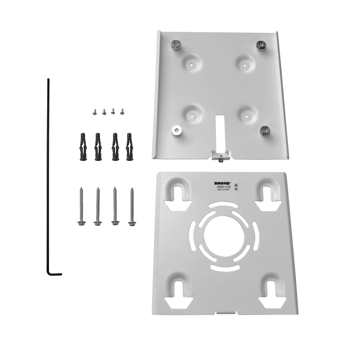Staffa da soffitto, consente di fissare i microfoni array da soffitto MXA920 direttamente al soffitto, assicurando un posizionamento preciso del microfono, un montaggio sicuro e una facile rimozione, se necessario.