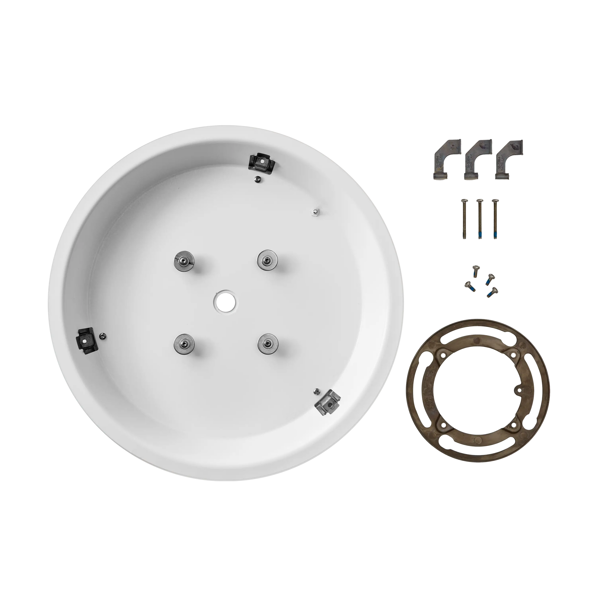 kit di montaggio per installare un microfono MXA901-R in un soffitto in cartongesso. Il microfono viene installato quasi a filo con il soffitto circostante.