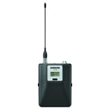 Trasmettitore digitale body-pack per serie Axient Digital. Banda G56 (470 - 636 MHz). Trasmissione digitale criptata (AES-256). Potenza di trasmissione selezionabile. Fino a 22 canali contemporaneui in 8Mhz, ricerca automatica dei canali disponibili e sincronizzazione con il ricevitore tramite IR. Ingresso microfonico con connettore Lemo3. Guadagno regolabile tra 0 - 21 dB (step 3 dB). Gamma Dinamica superiore a 120db ! Robusto chassis in alluminio, antenna removibile. Porta IR per la sincronizzazione con il ricevitore, display LCD retroilluminato per impostazioni e monitoraggio dello stato. Alimentazione due batterie AA o batteria al litio ricaricabile Shure. Latenza max.2 ms, 2,9 ms in Alta Densità.Frequency Diversity con 2 Body Pack.