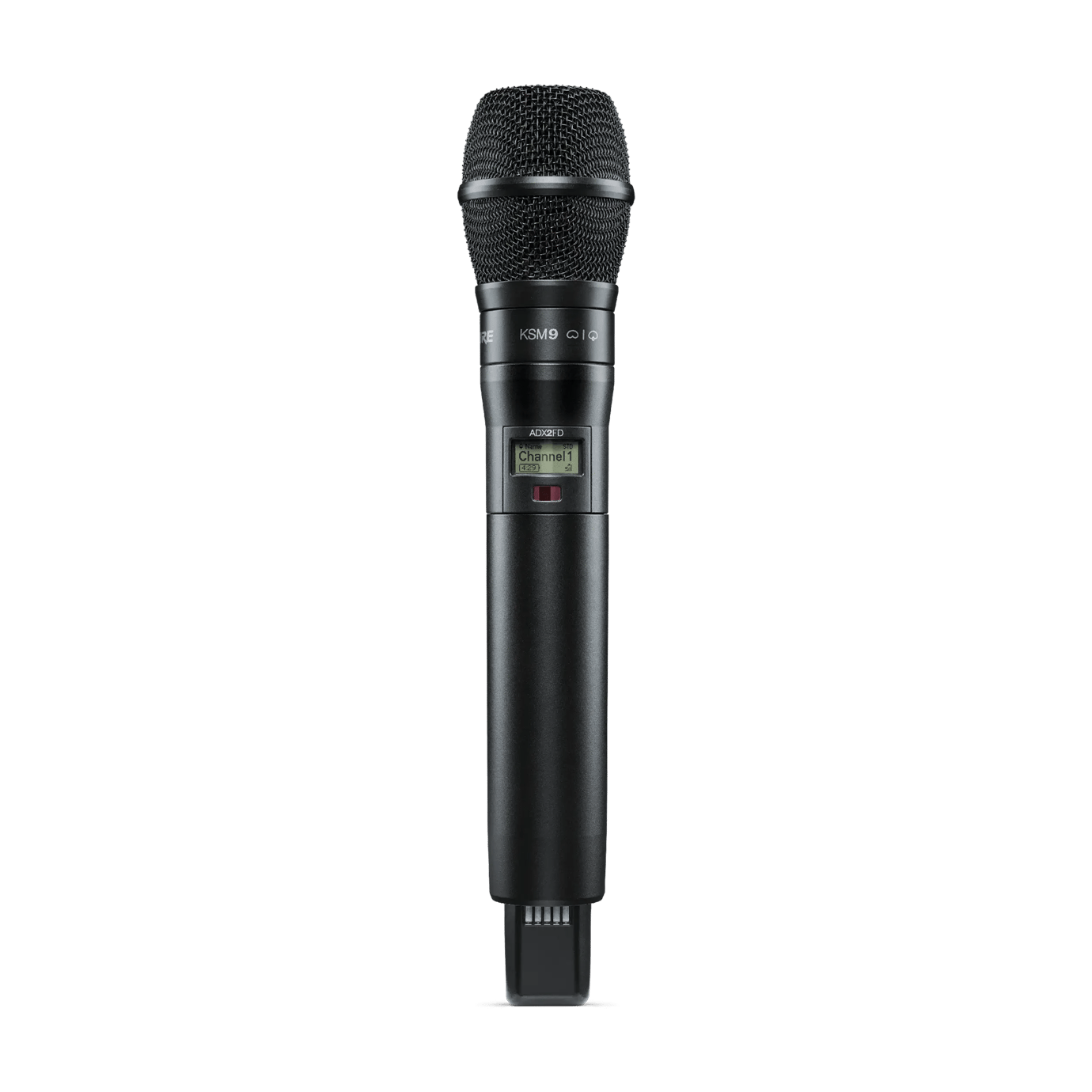 Trasmettitore palmare doppia portante serie ADX con capsula KSM9. Controllo remoto a 2.4 GHz tramite Showlink. Banda G56 (470 - 636 MHz) per risoluzione automatica delle interferenze. Trasmissione digitale criptata (AES-256). Potenza di trasmissione selezionabile 2/10/50 mW singola portante o 2x20mW in modalità frequency diversity. Fino a 22 canali contemporanei in 8Mhz, ricerca automatica dei canali disponibili e sincronizzazione con il ricevitore tramite IR. Offset livello regolabile tra -12 /+ 21 dB. Gamma dinamica superiore a 120 dB. Robusto chassis in metallico resistente all'umidità, antenna removibile e contatti di ricarica. Display LCD retroilluminato per impostazioni e monitoraggio dello stato. Include due batterie ricaricabili SB920. Latenza max.2 ms, 2,9 ms in modalità High Density. Altezza 256 mm, Diametro 51mm. Peso 340g (senza batteria). Colore Nero
