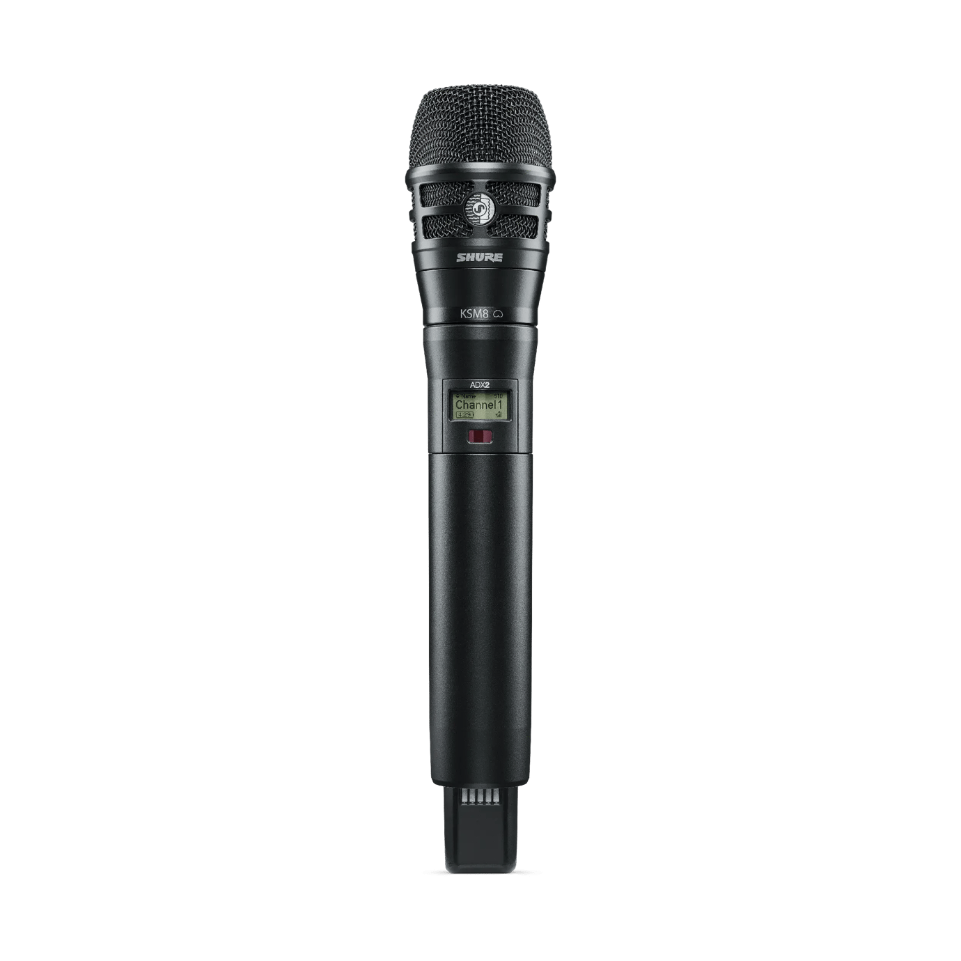 Trasmettitore palmare singola portante serie ADX con capsula KSM8. Controllo remoto a 2.4 GHz tramite Showlink. Banda G56 (470 - 636 MHz) per risoluzione automatica delle interferenze. Trasmissione digitale criptata (AES-256). Potenza di trasmissione selezionabile 2/10/40 mW. Fino a 22 canali contemporanei in 8Mhz, ricerca automatica dei canali disponibili e sincronizzazione con il ricevitore tramite IR. Offset livello regolabile tra -12 /+ 21 dB. Gamma dinamica superiore a 120 dB. Robusto chassis in metallico resistente all'umidità, antenna removibile e contatti di ricarica. Display LCD retroilluminato per impostazioni e monitoraggio dello stato. Include due batterie ricaricabili SB920. Latenza max.2 ms, 2,9 ms in modalità High Density. Altezza 254 mm, Diametro 51mm. Peso 179g (senza batteria). Colore Nero