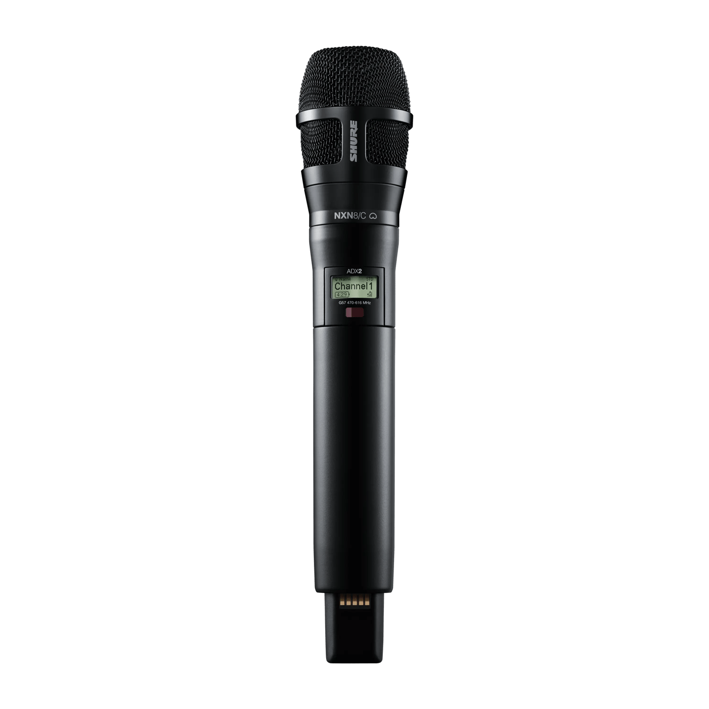 Trasmettitore palmare singola portante serie ADX con capsula Nexadyne Cardioide a doppio trasduttore. Controllo remoto a 2.4 GHz tramite Showlink. Banda G56 (470 - 636 MHz) per risoluzione automatica delle interferenze. Trasmissione digitale criptata (AES-256). Potenza di trasmissione selezionabile 2/10/40 mW. Fino a 22 canali contemporanei in 8Mhz, ricerca automatica dei canali disponibili e sincronizzazione con il ricevitore tramite IR. Offset livello regolabile tra -12 /+ 21 dB. Gamma dinamica superiore a 120 dB. Robusto chassis in metallico resistente all'umidità, antenna removibile e contatti di ricarica. Display LCD retroilluminato per impostazioni e monitoraggio dello stato. Include due batterie ricaricabili SB920. Latenza max.2 ms, 2,9 ms in modalità High Density. Altezza 254 mm, Diametro 51mm. Peso 179g (senza batteria). Colore Nero