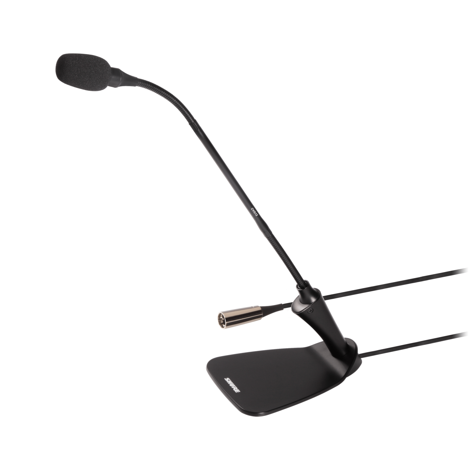 Microfono a collo d'oca 12" per installazioni professionali completo di Base da Tavolo integrata. Capsula: Condensatore (Electret); Polare: Cardioide; Risposta: 70-16000 Hz; Sens.: -33 dBV/Pa* a 1kHz *1 Pa=94 dB SPL; Impedenza: 180 Ohm; Max SPL: 120 dB; Rumore: 27 dBA; S/N: 67 dB (IEC 651) at 94 dB SPL; Alimentazione: Phantom 11-52V 2mA; Preamplificatore integrato. Connettore XLR3M in uscita dal preamplificatore. Schermatura RF. Colore: Nero; Peso: 177 g. Lunghezza con capsula dalla base: 441 mm. Accessori inclusi: antivento, flangia di montaggio superficiale.
