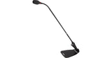 Microfono a collo d'oca 18" per installazioni professionali con Anello luminoso rosso e tasto mute completo di Base da Tavolo integrata. Capsula: Condensatore (Electret); Polare: Cardioide; Risposta: 70-16000 Hz; Sens.: -33 dBV/Pa* a 1kHz *1 Pa=94 dB SPL; Impedenza: 180 Ohm; Max SPL: 120 dB; Rumore: 27 dBA; S/N: 67 dB (IEC 651) at 94 dB SPL; Alimentazione: Phantom 11-52V 5mA; Preamplificatore integrato. Connettore XLR3M in uscita dal preamplificatore. Schermatura RF. Colore: Nero; Peso: 191 g. Lunghezza con capsula dalla base: 581 mm. Accessori inclusi: antivento, flangia di montaggio superficiale