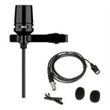 Microfono lavalier miniaturizzato per utilizzo con body pack delle serie wireless. Capsula: Condensatore (Electret con alimentazione Bias +5VDC max.+10VDC); Polare: Cardioide; Risposta: 20-20.000 Hz; SPL max (1KHz): 139 dB SPL ; S/N: 72 dB; Gamma dinamica: 117 dB. Rumore interno: 22 dB; Impedenza:600 ohms; Peso: 25 gr.. Cavo 1.3m a due conduttori schermato con connettore TA4F. Colore: Nero. Accessori inclusi: n.2 Antivento, n.1 Clip a coccodrillo.