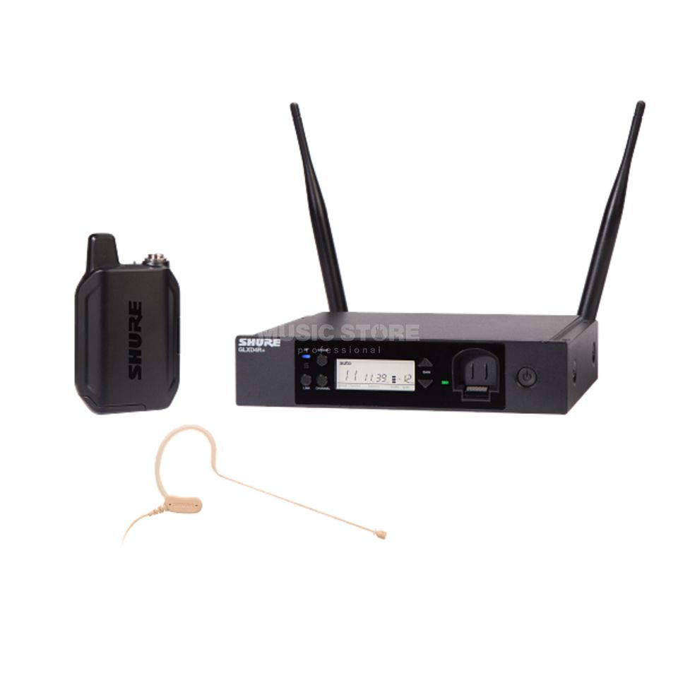 Kit con ricevitore rackabile GLXD4R+ e trasmettitore bodypack GLXD1+ con microfono ad archetto con capsula MW153 omnidirezionale adatta ad applicazioni di parlato, banda Z4