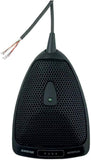Microfono boundary con interruttore per montaggio superficiale adatto per conferenze, leggii, palcoscenici con uscita cavo a 90°. Capsula: Condensatore (Electret); Polare: Cardioide; Risposta: 50-17000 Hz; Sens.: -30 dBV/Pa* a 1kHz *1 Pa=94 dB SPL; Impedenza: 150 Ohm; Max SPL: 119 dB; Rumore: 23 dBA; S/N: 71 dB (IEC 651) at 94 dB SPL; Interruttore a membrana con attenuazione 50 dB e LED di indicazione. Dip switch interno per scelta modalità di funzionamento e contatti logici in/out per controllo da remoto. Alimentazione: Phantom 11-52V 2mA; Dimensioni: Lunghezza 108mm Larghezza 76 mm Altezza 22mm; Colore: Nero; Cavo 3.7m non terminato. Preamplificatore integrato. Schermatura RF. Accessori inclusi: custodia morbida con zip, protezioni per pittura.