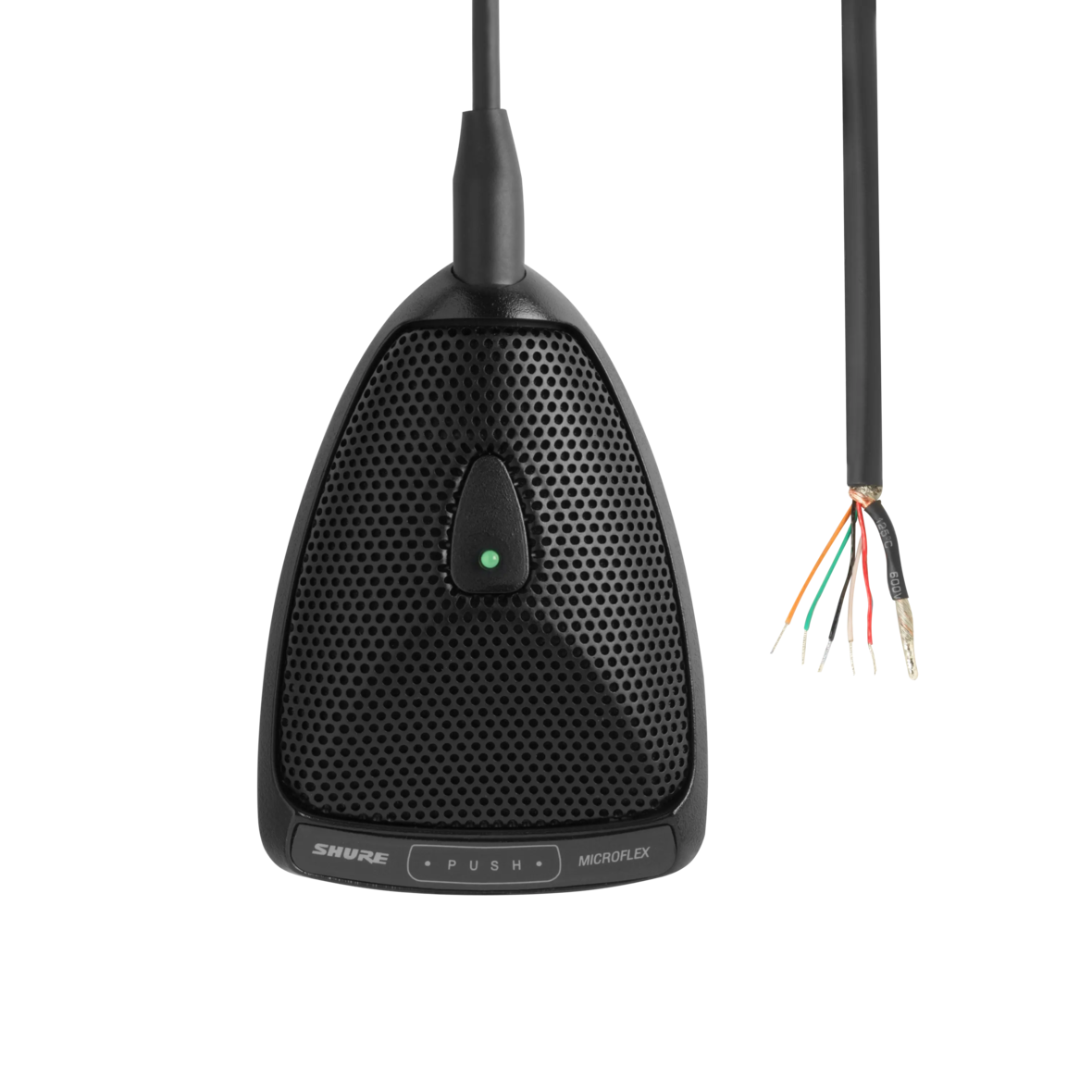 Microfono boundary con interruttore per montaggio superficiale adatto per conferenze, leggii, palcoscenici. Capsula: Condensatore (Electret); Polare: Supercardioide; Risposta: 50-17000 Hz; Sens.: -26.5 dBV/Pa* a 1kHz *1 Pa=94 dB SPL; Impedenza: 150 Ohm; Max SPL: 116 dB; Rumore: 22 dBA; S/N: 72 dB (IEC 651) at 94 dB SPL; Interruttore a membrana con attenuazione 50 dB e LED di indicazione. Dip switch interno per scelta modalità di funzionamento e contatti logici in/out per controllo da remoto. Alimentazione: Phantom 11-52V 2mA; Dimensioni: Lunghezza 108mm Larghezza 76 mm Altezza 22mm; Colore: Nero; Cavo 3.7m non terminato. Preamplificatore integrato. Schermatura RF. Accessori inclusi: custodia morbida con zip, protezioni per pittura.