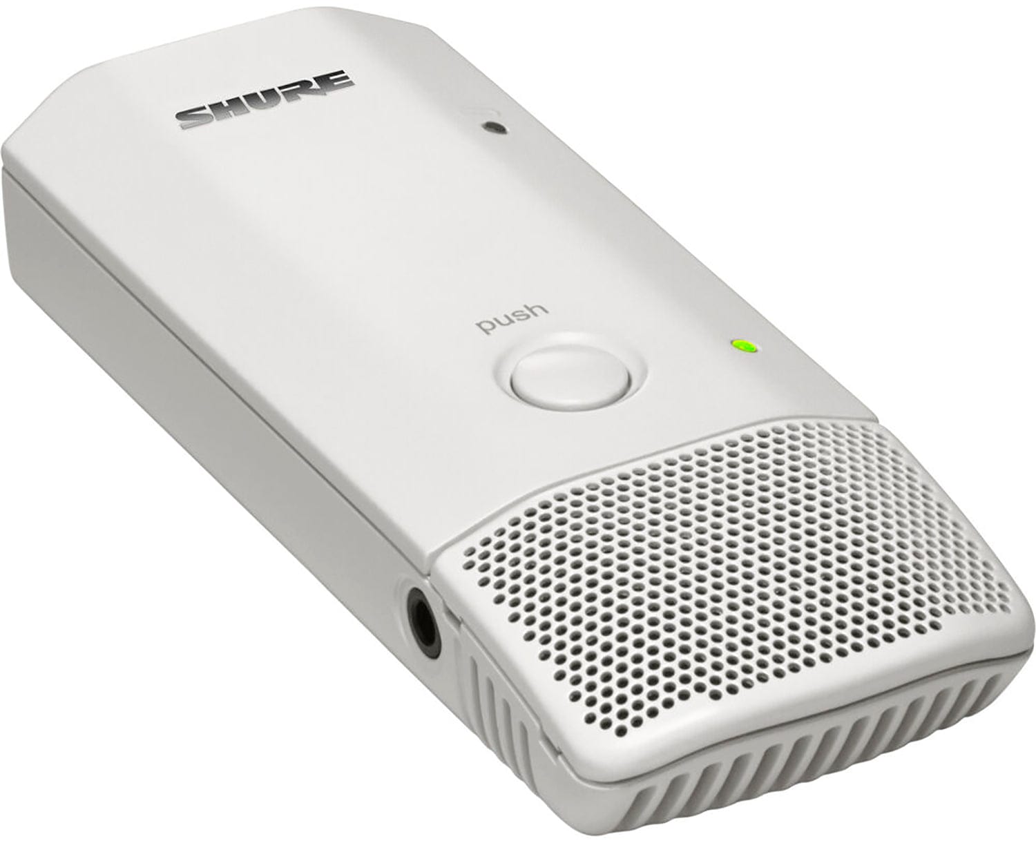 Ricetrasmettitore con microfono da tavolo omnidirezionale per sistema Microflex Wireless NeXt. Uscita cuffie jack 3,5 mm per l'ascolto del canale audio di ritorno. Pulsante programmabile per attivazione/disattivazione microfono. Connettore per ricarica USB-C . Batteria al litio inclusa, durata circa 17 ore. Dimensioni: 23 x 44 x 114 mm, peso: 108 g. Colore bianco