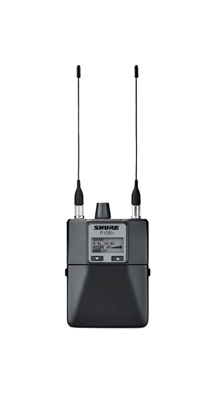 Ricevitore body pack True Diversity in banda J8E (554-626 MHz) per sistema di personal monitoring PSM1000+. Fino a 39 sistemi nella stessa banda. Circuiti brevettati Shure Audio Reference Companding per qualità paragonabile a un sistema cablato. Uscita su minijack da 3.5mm. DSP con EQ 4 bande integrato, regolazione volume e volume lock, display indicazione canale, LED indicazione stato batteria, ricezione RF e limiter attivato. Funzione CueMode per sincronizzazione e monitoraggio di diversi trasmettitori. Squelch regolabile. Dimensioni: 99 x 66 x 23 mm; Peso: 158 g (senza batterie). Alimentazione: 2 batterie tipo AA 1.5 VDC (4-6 ore con RF attiva)