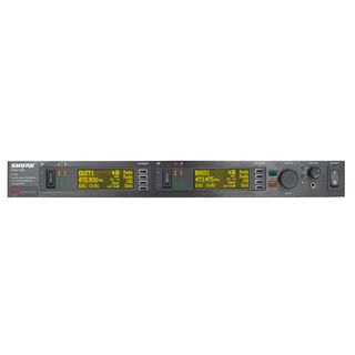 Doppio trasmettitore per sistema di personal monitornig in banda L8E. Fino a 39 sistemi nella stessa banda. Circuiti brevettati Shure Audio Reference Companding per qualità paragonabile a un sistema cablato. 2+2 ingressi combinati mic/linea su connettore XLR3F e su Jack 6.3mm. 2+2 uscite "loop" separate analogiche su connettore Jack 6.3mm. Uscita cuffie frontale indipendente per monitoraggio diretto su minijack 3.5mm. Display LCD per visualizzazione frequenze e livelli. Analizzatore di spettro integrato con scansione visualizzabile su display. Impedenza di uscita RF: 50 ohm (tipica). Modulazione: FM deviazione ±34 KHz@ 1KHz; Portata: 90m in campo aperto. Auto scan in frequenza e sincronismo con ricevitore tramite IR. Doppia porta ethernet per controllo tramite software Wireless Workbench. Compatibile con serie UHF-R per trasmissioni punto punto di elvata qualità. Potenza di uscita selezonabile: 10, 50 mW. Dimensioni: 44 x 483 x 343 mm; Peso netto: 4.5 kg. Alimentazione: 100-240 V AC, 50/60 Hz, 0.5 A.
