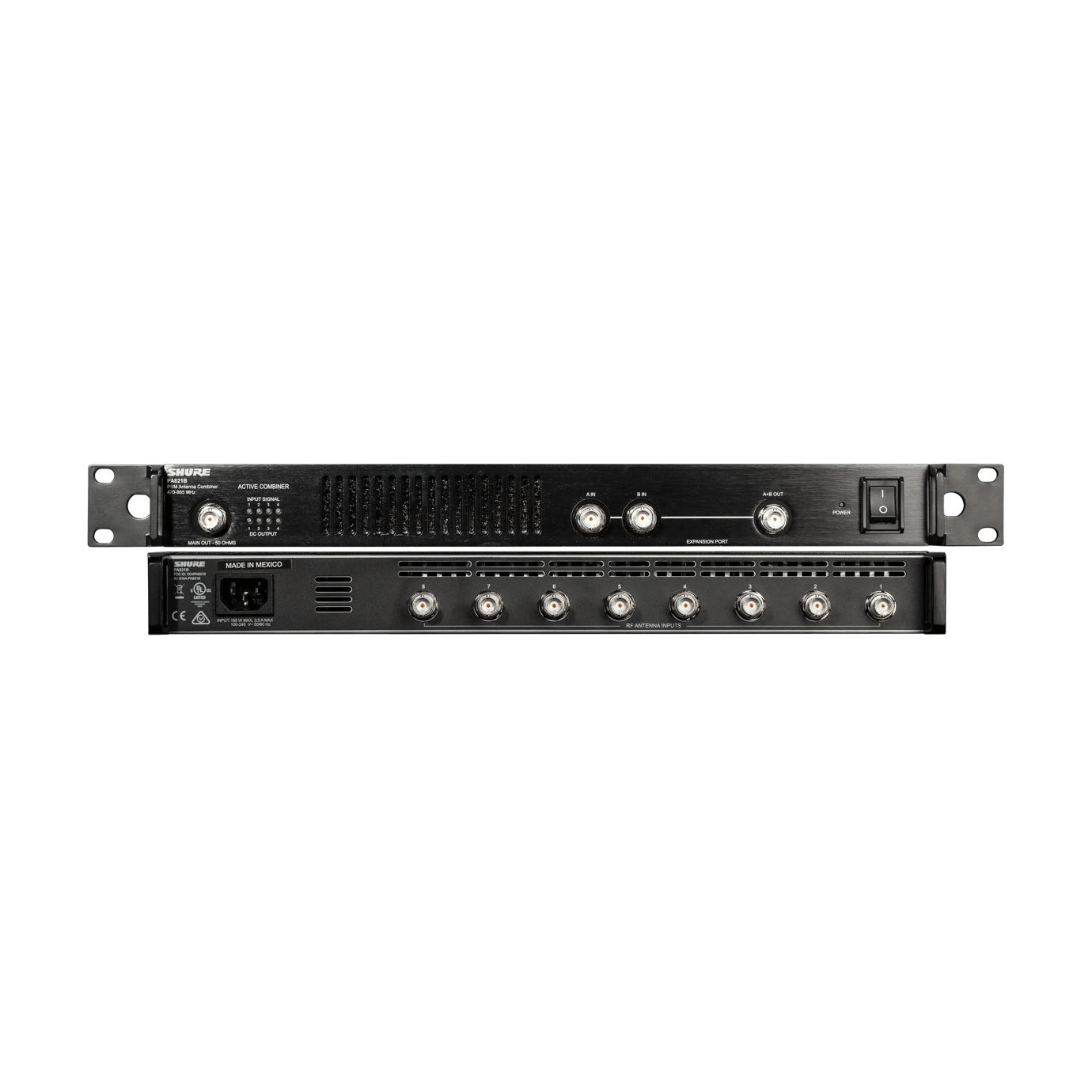 Combinatore attivo d'antenna 8:1 per trasmettitori della serie PSM. Possibilitàdi utilizzo utilizzo come combinatore di antenne in ricezione, jumper interno per attivazione dell'alimentazione per ogni ingresso. Dimensioni: 43 mm x 401 mm x 365 Peso: 4.8 kg. Alimentazione 230 VAC.