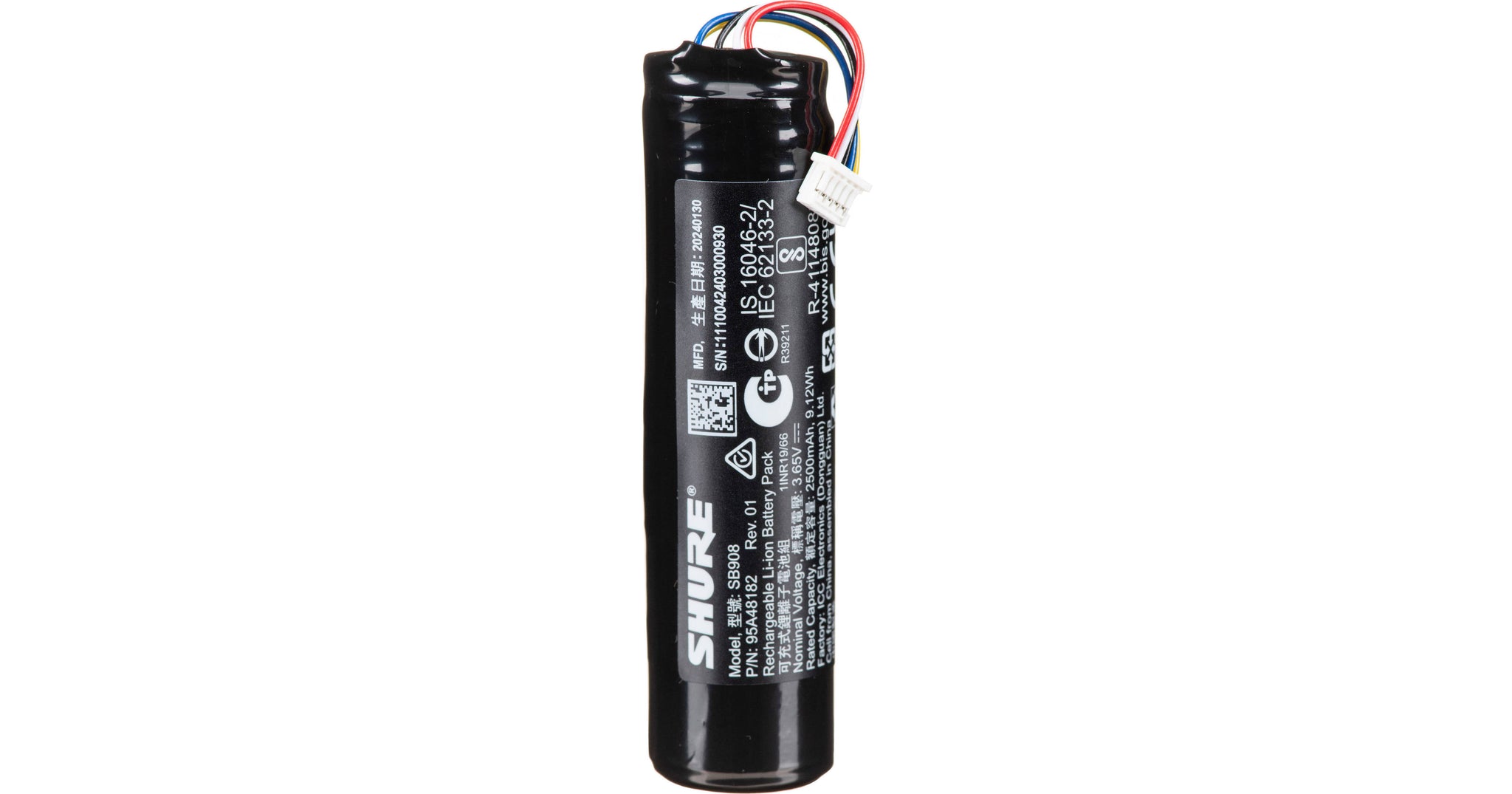 Batteria ricaricabile agli ioni di litio per trasmettitori Shure Microflex Wireless NeXt MXW2X. Fino a 28 ore di autonomia