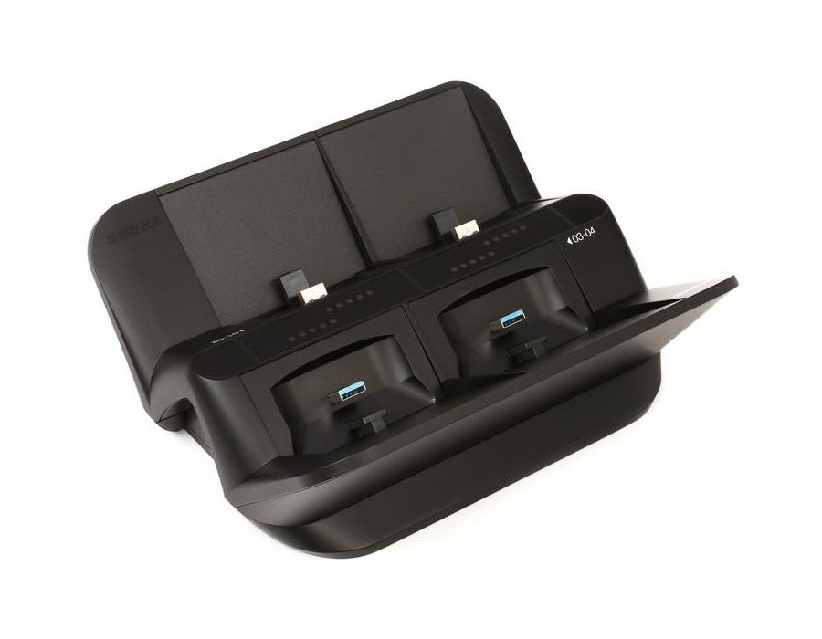 Base di ricarica a 4 posti per Basi Mic. e Bouindary trasmettitori della serie QLXD e ULXD. Display a LED sul pannello frontale per indicazione dello stato di carica delle batterie. Dotata di porta di rete per il monitoraggio dello stato di carica da remoto. Circuito di ricarica intelligente, previene dal danneggiamento e estende la durata delle batterie. Alimentazione 15 Vdc, 3.3 A.