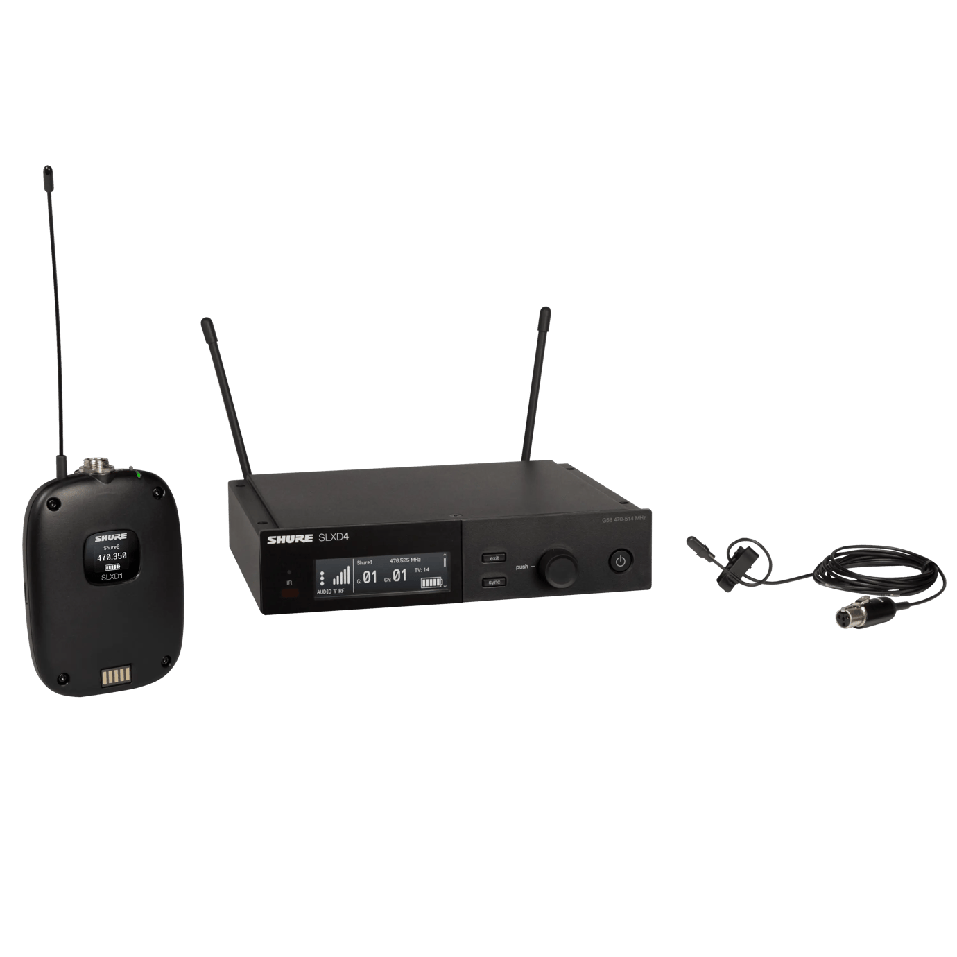 Kit radiomicrofono digitale con lavalier Aquaplex. Costituito da un trasmettitore SLXD1, un ricevitore SLXD4 e microfono lavalier Aquaplex DL4B/O. Banda G59 (470 - 514 MHz). Accessori inclusi: n.1 Alimentatore rete 230VAC mod.PS23 con cavo 1,5mt., accessori per installazione a rack,, n°2 antenne 1\4 d'onda, n°2 batterie AA, custodia protettiva