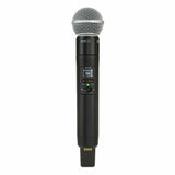 Trasmettitore handheld per serie SLX-D, con capsula SM58. Banda J53 (562 - 606 MHz). Potenza di trasmissione selezionabile 1-10mW. Fino a 32 sistemi per banda. Portata max.100mt. Risposta in frequenza: 20-20KHz. Dinamica: 120dB. Compatibile con tutte le capsule Shure. Robusto chassis in alluminio. Porta IR per la sincronizzazione con il ricevitore, display OLED per impostazioni e monitoraggio dello stato. Alimentazione due batterie AA o batteria al litio ricaricabile Shure SB903, durata fino a 8 ore. Contatti posteriori esterni per ricarica. Dimensioni: diametro 37.,1 x lunghezza 176 mm mm. Peso: 147 g. (senza batterie). Colore nero