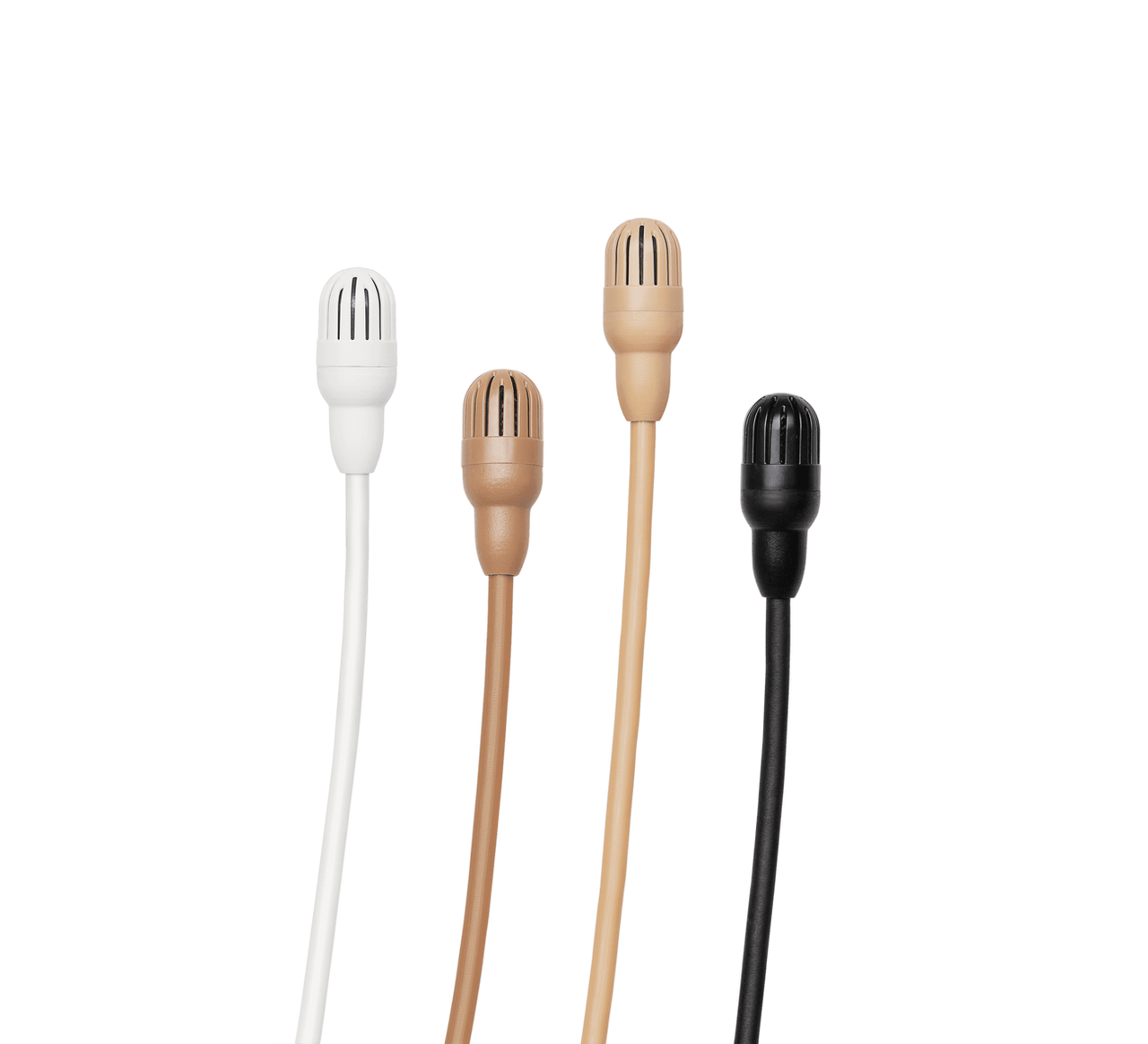 Microfono lavalier miniaturizzato, diagramma polare omnidirezionale. Capsula brevettata a doppio diaframma. Sensibilità: -45 dBV (5,62 mV), max SPL 142 dB spl, rumore equivalente 24,5 dB spl-A. Risposta in frequenza 20 Hz - 20 kHz. Cappucci intercambiabili rivestiti in materiale idrofobico proteggono la capsula dal sudore e dall'umidità Fornito con n°3 cappucci con risposta in frequenza flat e n°2 con risposta in frequenza "presence". Cavo estremamente flessibile, lunghezza 1,67 m e diametro 1,6 mm terminato con connettore TA4F. Dimensioni del microfono: altezza 13,5 mm, diametro 5,6 mm. Peso: 12 g. Colore bianco