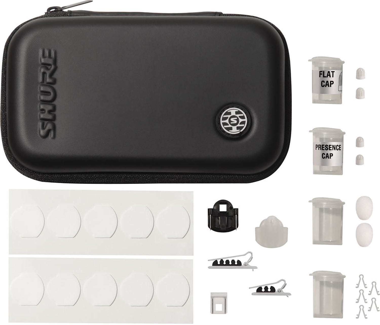 Microfono lavalier miniaturizzato per voce, diagramma polare omnidirezionale. Capsula brevettata a doppio diaframma. Sensibilità: -45 dBV (5,62 mV), max SPL 142 dB spl, rumore equivalente 24,5 dB spl-A. Risposta in frequenza 20 Hz - 20 kHz specifica per il parlato. Cavo estremamente flessibile, lunghezza 2,43 m e diametro 1,6 mm non terminato. Accessori inclusi: Custodia per il trasporto, n°2 antivento, clip da cravatta singola, clip da cravatta doppia, vampire clip e adesivi. Dimensioni del microfono: altezza 19 mm, diametro 5,3 mm. Peso: 12 g. Colore bianco