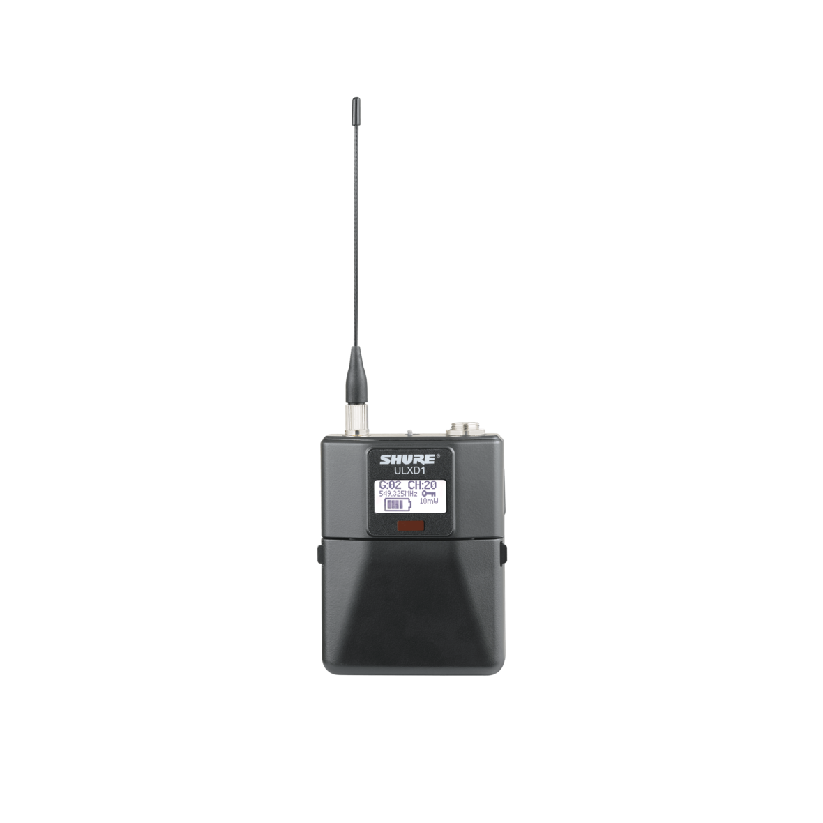 Trasmettitore digitale body-pack per serie ULX-D. Banda K51. Trasmissione digitale criptata (AES-256). Potenza di trasmissione selezionabile 1, 10, 20 mW. Fino a 72 sistemi per banda, ricerca automatica dei canali disponibili e sincronizzazione con il ricevitore tramite IR. Ingresso microfonico TA4M. Guadagno regolabile tra 0 - 21 dB (step 3 dB). Robusto chassis in alluminio, antenna removibile. Porta IR per la sincronizzazione con il ricevitore, display LCD retroilluminato per impostazioni e monitoraggio dello stato. Alimentazione due batterie AA o batteria al litio ricaricabile Shure SB900, durata fino a 12 ore. Dimensioni: 86 x 66 x 23 mm. Peso: 142 g (senza batterie)