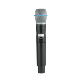 Trasmettitore digitale a mano condensatore supercardioide con capsula Beta 87A per serie ULX-D. Banda G51 (470 - 534 MHz). Trasmissione digitale criptata (AES-256). Potenza di trasmissione selezionabile 1, 10, 20 mW. Fino a 72 sistemi per banda, ricerca automatica dei canali disponibili e sincronizzazione con il ricevitore tramite IR. Guadagno regolabile tra 0 - 21 dB (step 3 dB), SPL massimo 145 DB. Robusto chassis in alluminio, antenna elicoidale integrata. Porta IR per la sincronizzazione con il ricevitore, display LCD retroilluminato per impostazioni e monitoraggio dello stato. Alimentazione due batterie AA o batteria al litio ricaricabile Shure SB900, durata fino a 12 ore. Dimensioni: lunghezza 256 mm, diametro 51 mm. Peso: 340 g (senza batterie)