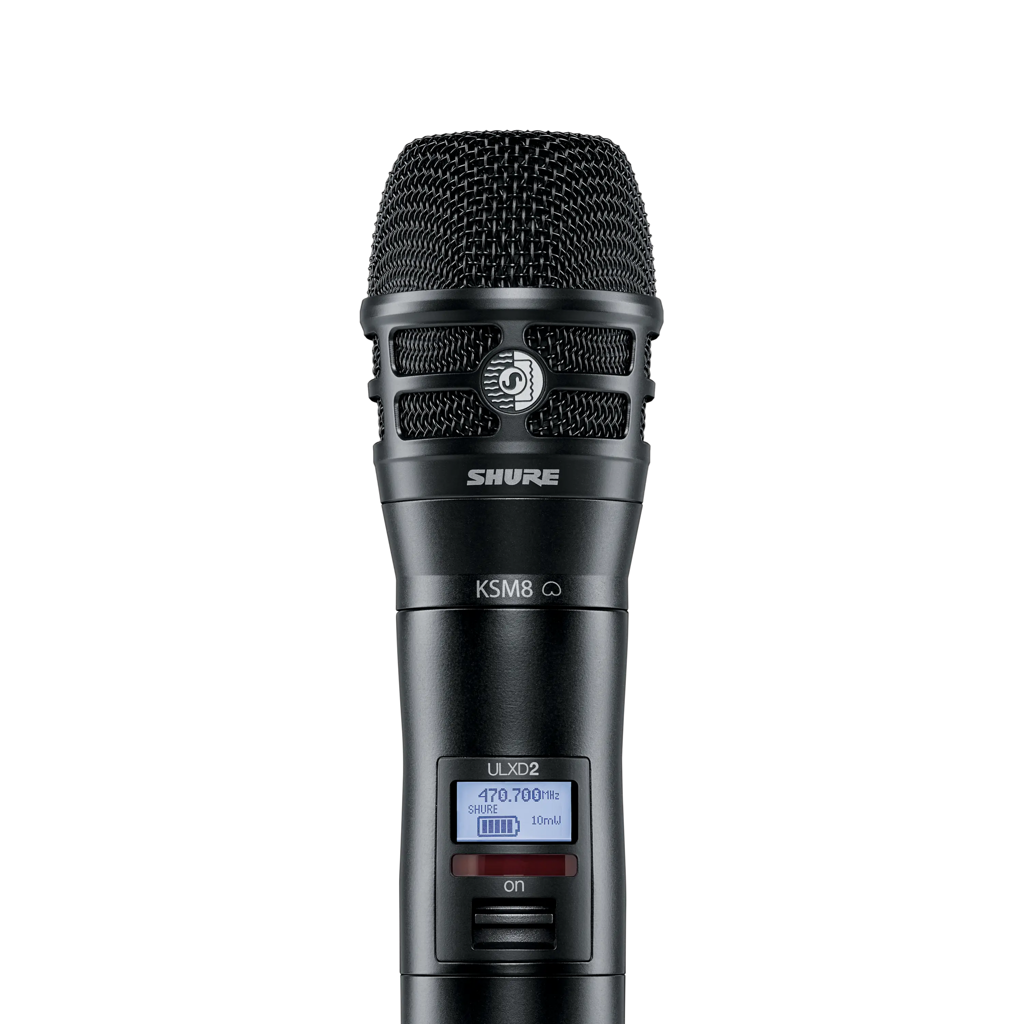 Trasmettitore digitale a mano cardioide dinamico con capsula KSM8 Dualdyne per serie ULX-D. Banda G51 (470 - 534 MHz). Trasmissione digitale criptata (AES-256). Potenza di trasmissione selezionabile 1, 10, 20 mW. Fino a 72 sistemi per banda, ricerca automatica dei canali disponibili e sincronizzazione con il ricevitore tramite IR. Guadagno regolabile tra 0 - 21 dB (step 3 dB), SPL massimo 145 DB. Robusto chassis in alluminio, antenna elicoidale integrata. Porta IR per la sincronizzazione con il ricevitore, display LCD retroilluminato per impostazioni e monitoraggio dello stato. Alimentazione due batterie AA o batteria al litio ricaricabile Shure SB900, durata fino a 12 ore. Dimensioni: lunghezza 256 mm, diametro 51 mm. Peso: 340 g (senza batterie). Colore: nero