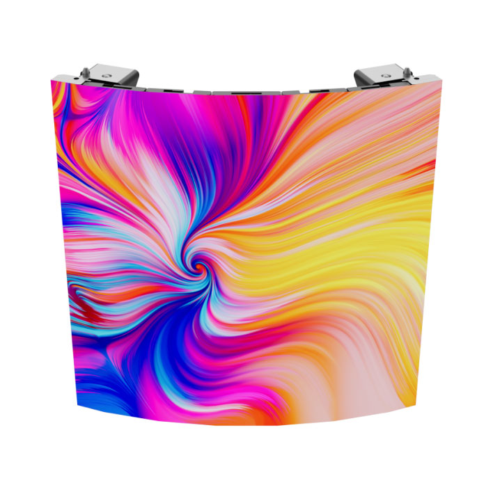 Pannello Rental FLESSIBILE per installazioni Indoor utilizzabile con NT2.6 - SMD1515 - Pixel pitch 2,6mm, risoluzione del pannello 192x192, luminosità 1000nits - Refresh rate 3840Hz – RC A8S-N - Consumo mq.: medio 230w, massimo 690w - angolo di visione H160°, V160° - dimensioni pannello 500x500x80mm - peso 7,5kg - Accesso front e retro - moduli a fissaggio magnetico - costruzione in pressofusione di alluminio - curvabile: concavo e convesso fino a 45° - sistema di montaggio rapido - Accessori per il rigging e lo stacking - si possono appendere fino a 20 pannelli uno sull'altro.