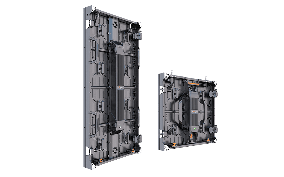 Pannello Rental per installazioni Indoor - SMD2121 - Pixel pitch 3,9mm, risoluzione del pannello 128x256, luminosità 1000nits - dimensioni pannello 500x1000x78mm, peso 12kg, moduli a fissaggio magnetico, costruzione in pressofusione di alluminio, curvabile: concavo e convesso +10 / -7,5° - Consumo mq.: medio 187w, massimo 560w - Refresh rate 3840Hz, angolo di visione H140°, V140° - Accesso front e retro, sistema di montaggio rapido con auto-lock & auto-eject - Accessori per il rigging e lo stacking, si possono appendere fino a 10 pannelli uno sull'altro.