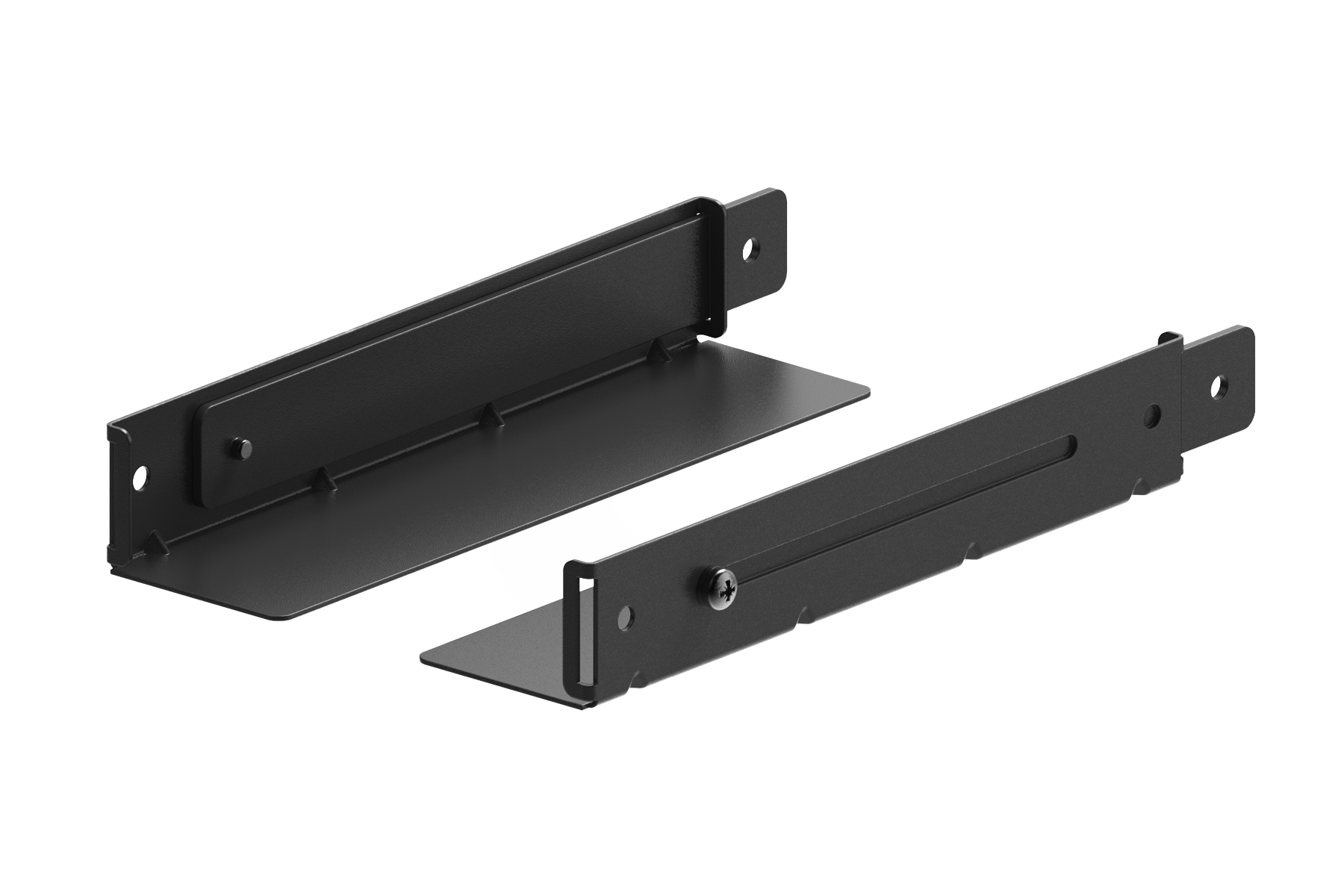 Coppia di slitte per apparati pesanti con profondità regolabile 280-430 mm. Colore nero. Peso 0.96 Kg.