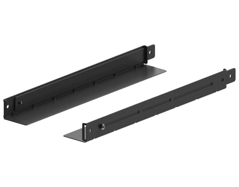Coppia di slitte per apparati pesanti con profondità regolabile 480-830 mm. Colore nero. Peso 0.96 Kg.