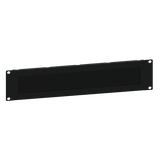 Pannello passacavi con spazzole standard 19" in lamiera da 1.5 mm, altezza 2 unità. Dimensioni 483 x 88 x 10 mm . Colore nero