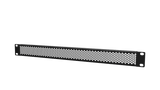 Pannello ventilato da 19" in lamiera da 1.5 mm con fori esagonali, altezza 1 unità. Dimensioni 483 x 43.7 x 10 mm. Colore nero