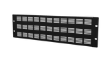 Pannello ventilato da 19" in lamiera da 1.5 mm con fessure orizzontali, altezza 3 unità. Dimensioni 483 x 132.5 x...