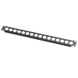 Pannello anteriore da 1U rack in alluminio da 2mm di spessore per installazione di n.16 connettori XLR femmina o maschio. Colore Nero RAL9005. Peso 0,12Kg