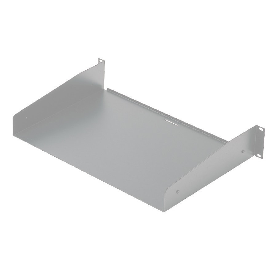 Ripiano rack da 2U in lamiera acciaio da 1,5mm.alloggiamento app.senza alette; Portata 20Kg., Colore Nero RAL9005, Peso 2,35Kg