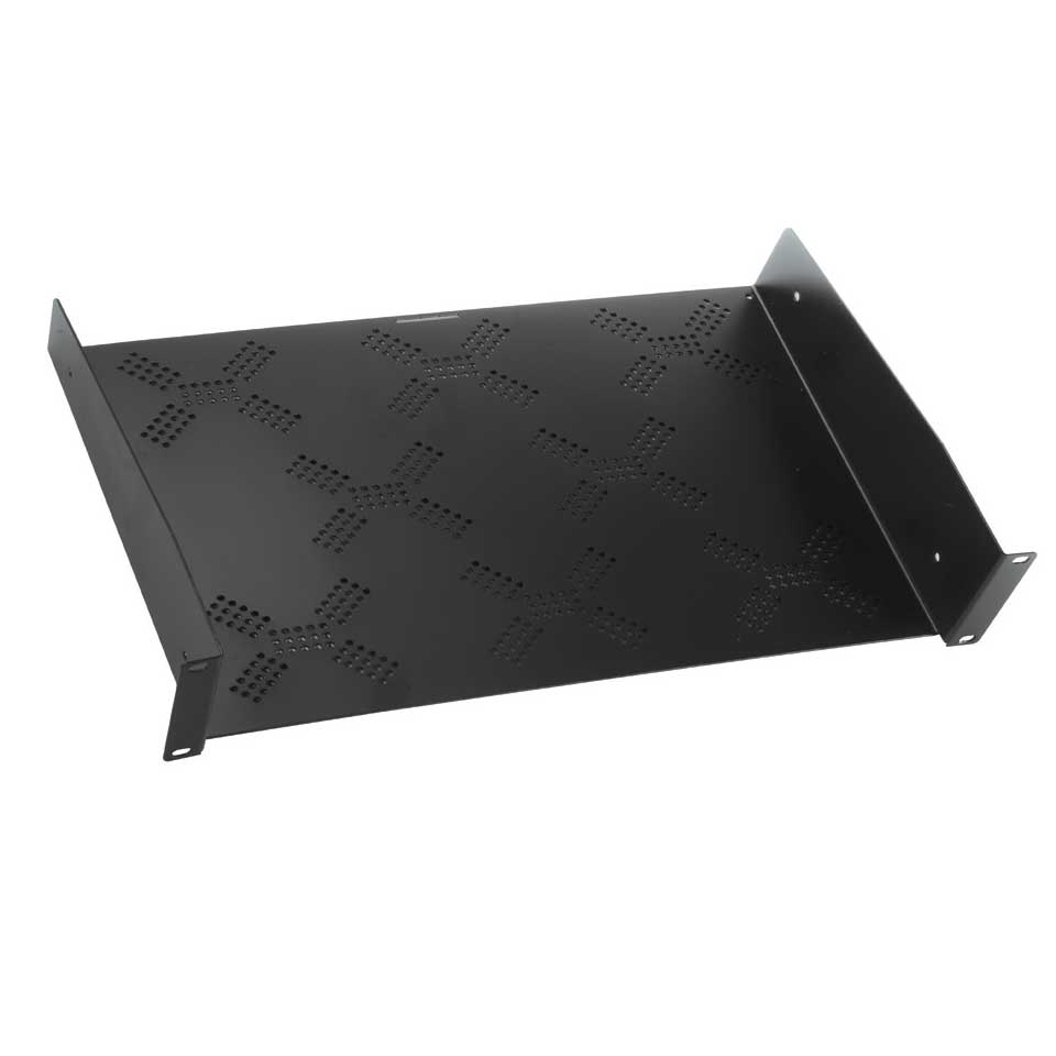 Ripiano rack Areato da 2U in lamiera acciaio da 1,5mm.alloggiamento app.senza alette; Portata 15Kg., Colore Nero RAL9005, Peso 2,15Kg