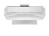 Videoproiettore per signage a ottica ultracorta posizionabile su scrivania o montato a soffitto/parete con tecnologia laser HD basata su Epson 3LCD per immagini da 80 a 160 pollici con risoluzione 4K enhancement con supporto al formato 21:9. Il pannello LCD da 0,62 pollici con C2 e permette la riproduzione di 1,07 miliardi di colori. La luminosità è pari a 5.000 lumen (3.500 lumen in modalità risparmio energetico). Può essere ruotato di 360 gradi in qualsiasi direzione, sia in orizzontale sia in verticale. Ottica 0,16 - 0,40:1; Connettività: gestione contenuti da USB tramite Epson Projector Content Manager, USB 2.0 tipo A (2x), USB 2.0 tipo B, RS-232C, interfaccia Ethernet (100Base-TX / 10Base-T), LAN IEEE 802.11a/b/g/n/ac (WiFi 5) wireless (opzionale), Ingresso HDMI (2x), Uscita HDMI, HDBaseT, Miracast. Consumo energetico: 290 Watt, 286 Watt (in modalità risparmio energetico), 0,4 Watt (stand-by). Colore: bianco. Dimensioni: 695‎ x 341 x 156 mm. Peso: 12.5 kg.